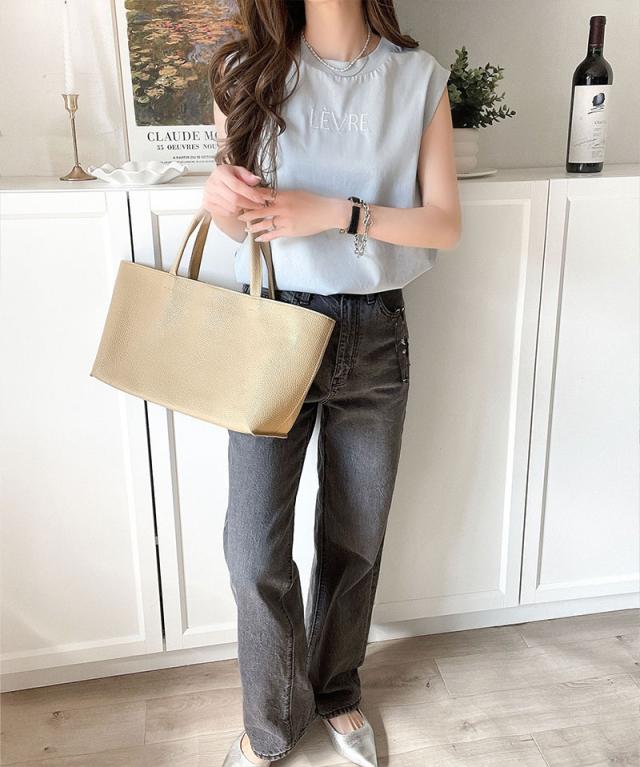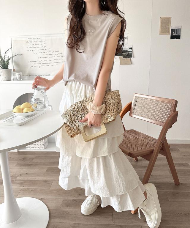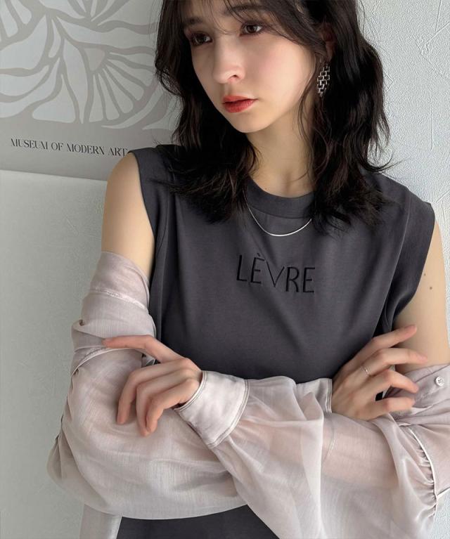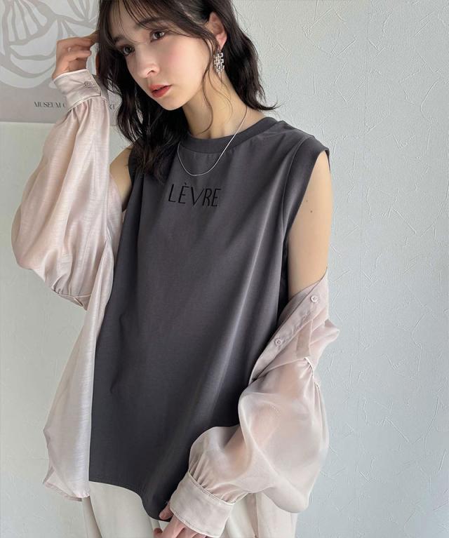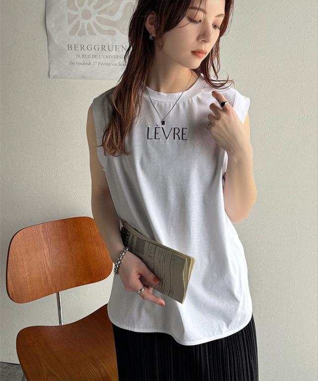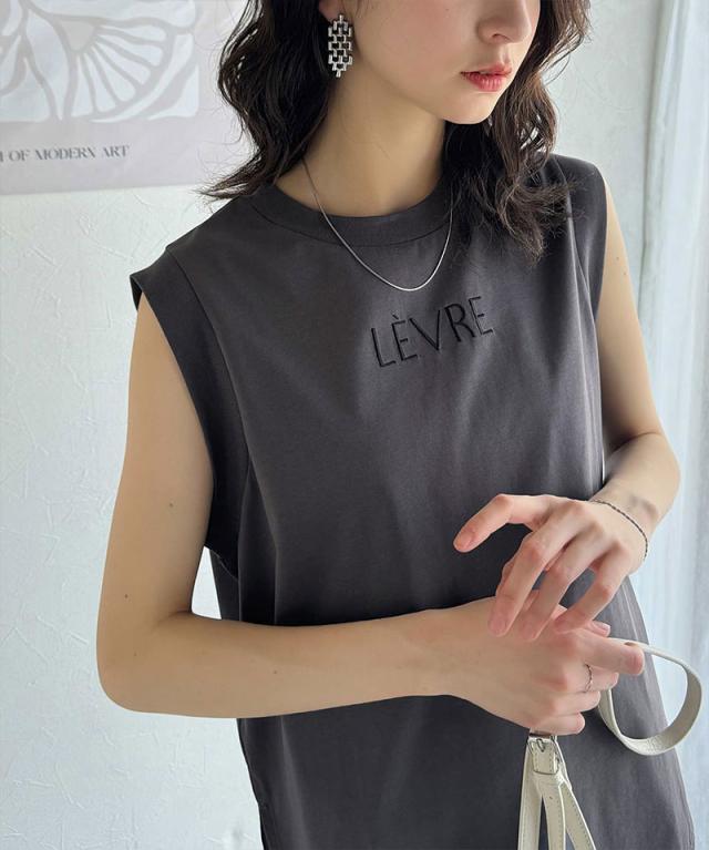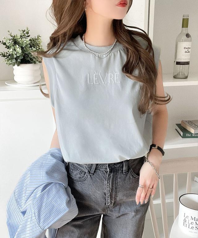 ★春夏コーデの主役!シルケット胸元刺繍サイド裾スリット入りノースリーブカットソー★