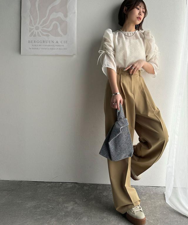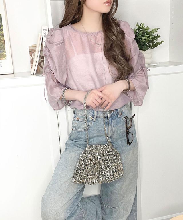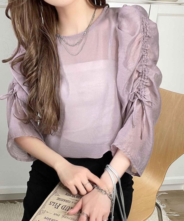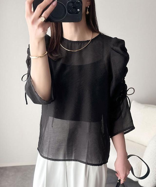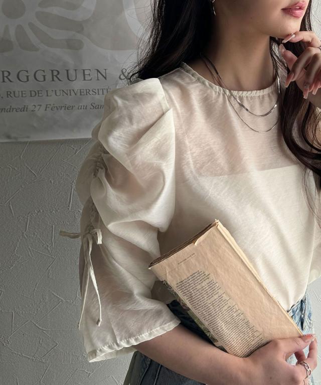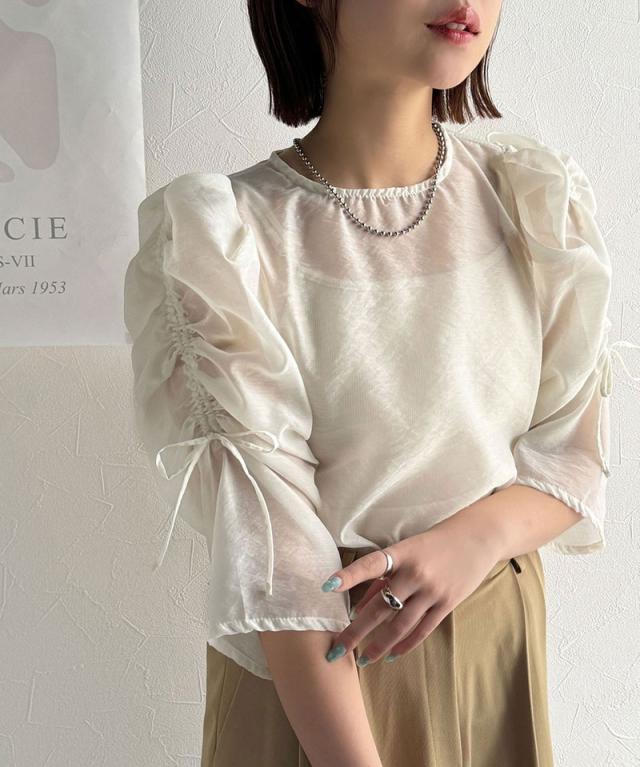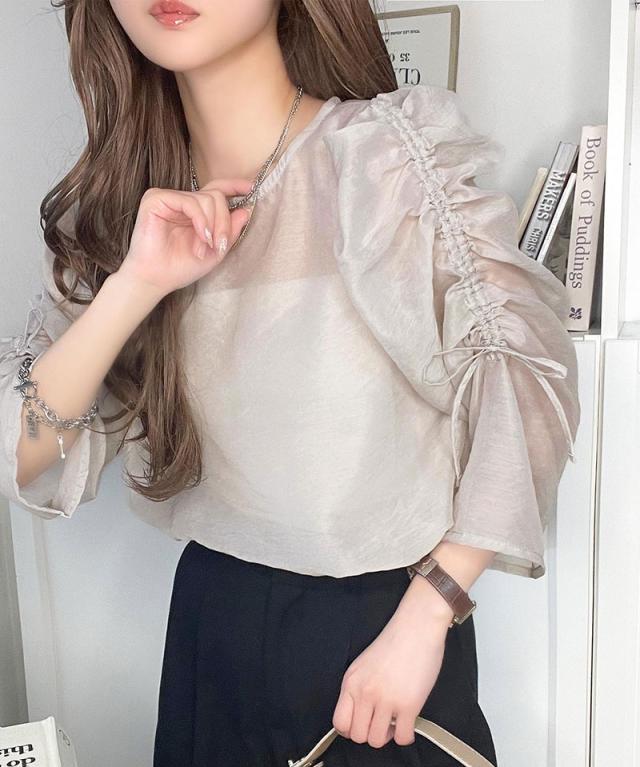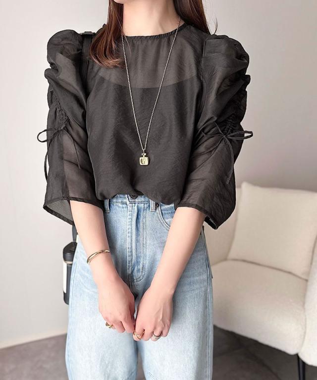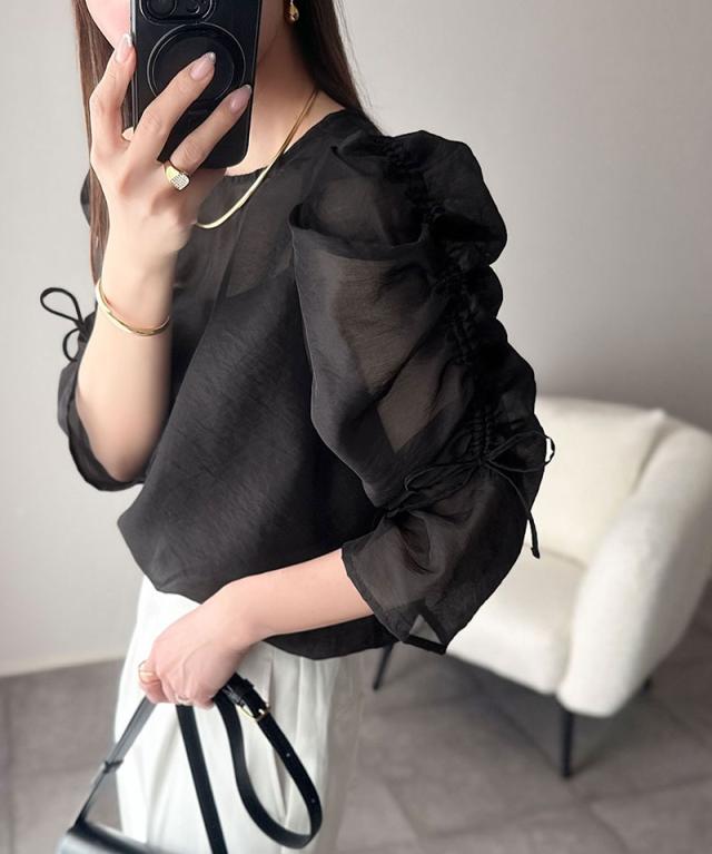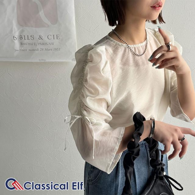 クラシカルエルフ秋新作 レディース トップス Tシャツ・カットソー ボリュームスリーブ ドロスト 上品シルエット エレガント トレンド 大人ブラウス オーガンジー素材 ギャザー調整 フェミニン シンプル アレンジ自在 2025ss ce1240077