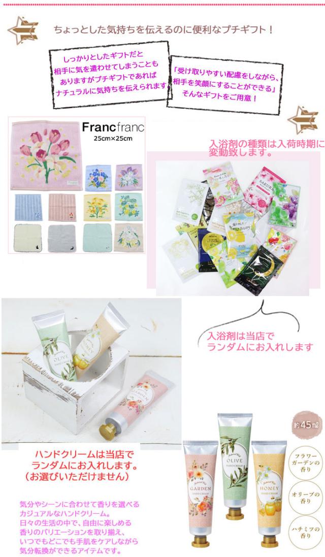 フランフラン ハンカチとハンドクリームの癒しギフト 入浴剤付き 当店オリジナル プチギフトにおすすめ ハンドケア ラッピング済 人気の贈り物 Francfranc ab-585000