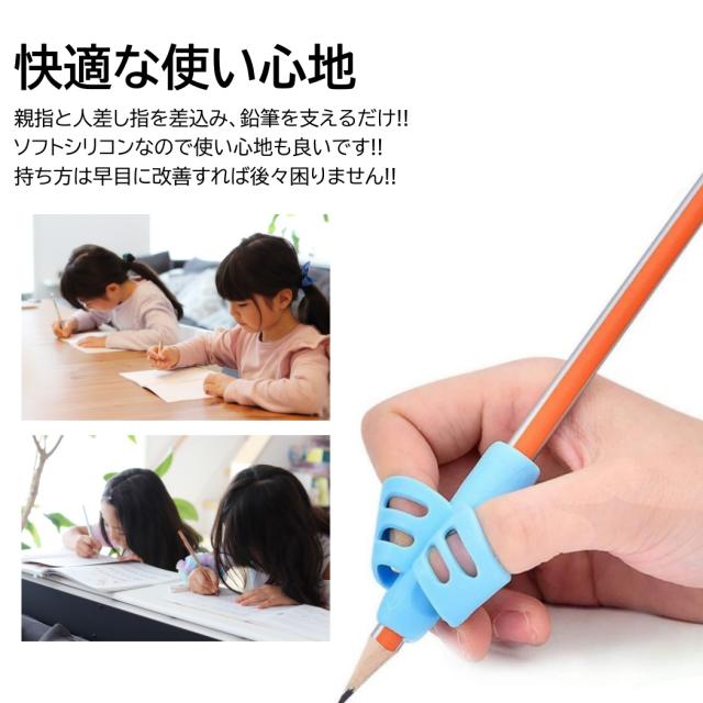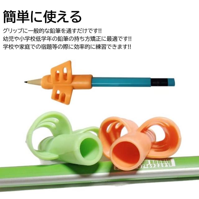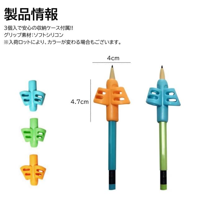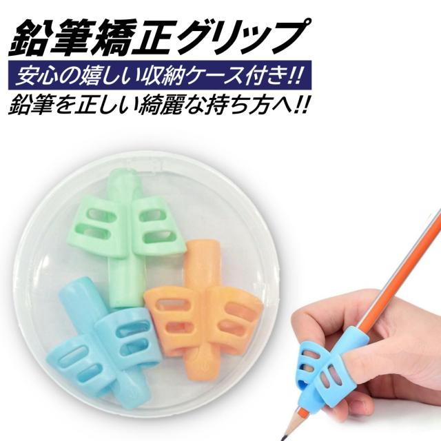 鉛筆 持ち方矯正グリップ 3色入 収納ケース付 子供 勉強 小学生 1年生 正しい シリコン ソフト 固定 幼児 えんぴつ 練習 トレーニング