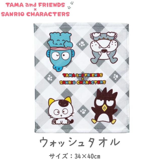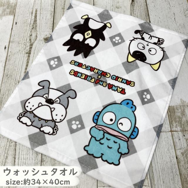 モノチェック ウォッシュタオル タマ&フレンズ サンリオ キャラクターズ 約34×40cm キャラクター 汗拭き おしぼり 子ども ベビー キッズ 小学生 保育園 幼稚園 サンリオキャラクター タマ&フレンズ かわいい シャーリング パイル 洗顔後タオル