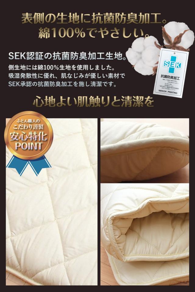 嫌なにおいを抑える抗菌防臭加工わたを使用。寝汗や汚れを受け止めてしまうお布団に安心な清潔機能綿を使用しました。