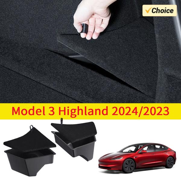テスラモデル 3 ハイランド 2024 2023 リアトランク収納ボックスビン左右コーナーオーガナイザーアクセサリー植毛蓋 TPE 貨物