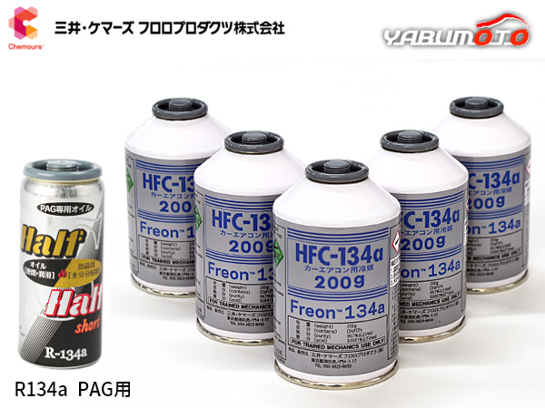 エアコンガス交換セット R134a 三井ケマーズ HFC-134a 200g×5本 エアコンオイル PAG 79629 1本 大型バン ワンボックス用 ミツイ