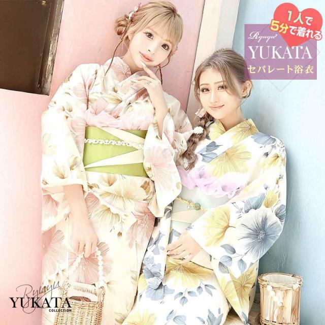 予約販売 キャバ浴衣 Ryuyu 白 花柄 セパレート浴衣 二部式浴衣 大柄 浴衣 セット レディース 浴衣レディース レディ