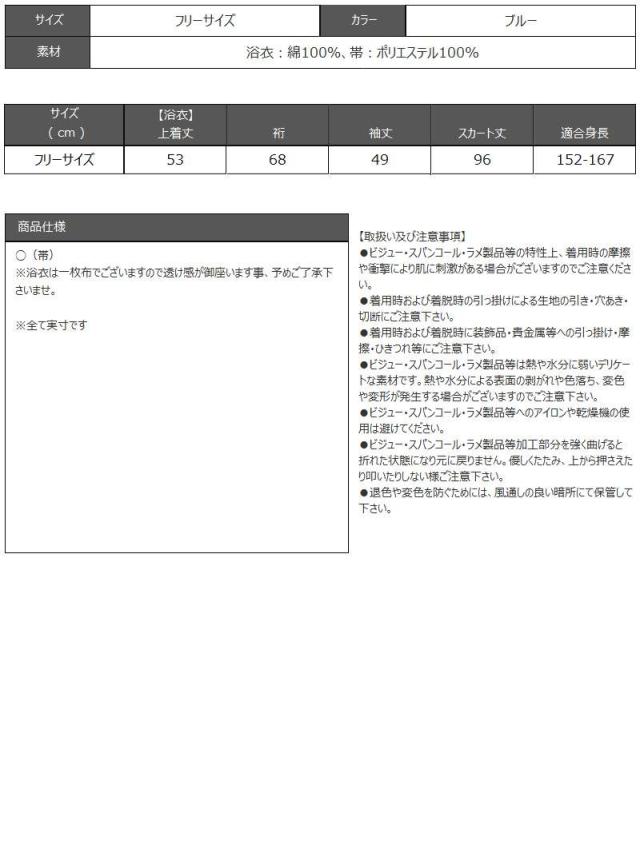浴衣:綿100%、帯:ポリエステル100%