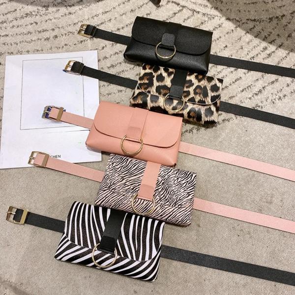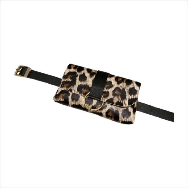 女性用ミニレザーウエストバッグ ヒョウストライプベルト ファニーパック ベルト フラップ 携帯電話 2 in 1 2022