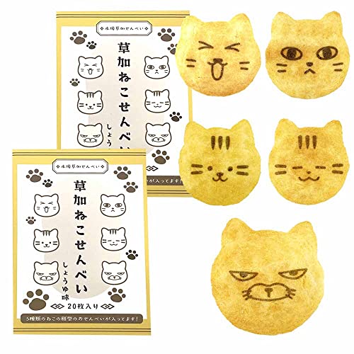 ねこせんべい 醤油味 20枚入り 2箱セット ギフト包装 ねこ ネコ 猫 本場 草加せんべい 個包装 煎餅 お菓子 和菓子 国内産うるち米 猫の顔型 プレゼント 国内製造 ネコ型お菓子 ねこせん お中元