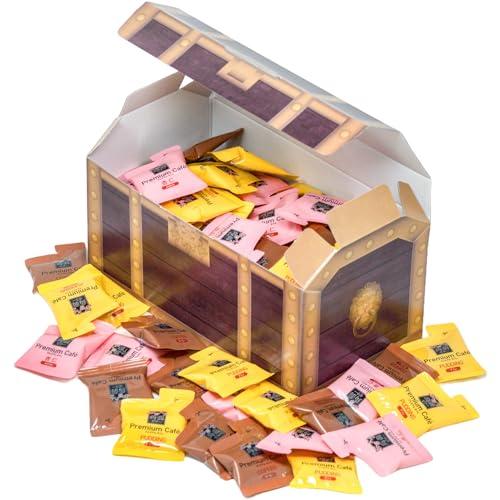 3種類の味コーヒー(1個16.4kcal)、抹茶(1個10.4kcal)、杏仁(1個8.4kcal)