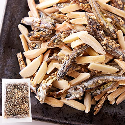 ■商品名:小魚アーモンド ■名称:魚介乾製品、木の実 ■原材料名:小魚(煮干魚類(いわし(国内産)、食塩)、砂糖、ごま、しょうゆ、澱粉分解物、食塩)、アーモンド(アメリカ産)/調味料(アミノ酸等)、(一部に小麦・アーモンド・ごま・大豆を含む) ■内容量:300g ■賞味期限:製造日より常温180日 ■保存方法:直射日光、高温多湿を避け保存下さい。