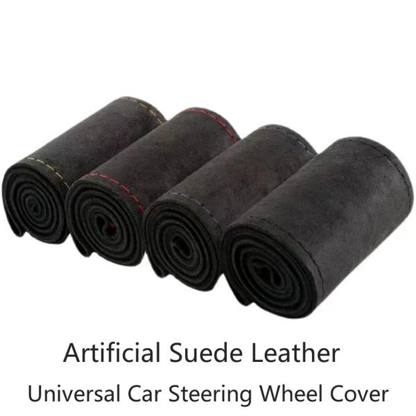 ユニバーサル車のステアリングホイールカバー人工スエードレザー 15 インチ DIY カーアクセサリー模造アルカンターラソフト耐摩耗性
