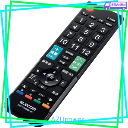 エレコム テレビリモコン 12メーカー対応 【 パナソニック 日立 シャープ 東芝 ソニー 三菱 LG ハイセンス アイワ アズマ オリオン フナイ 】 Mサイズ ブラック ERC-TV01MBK-MU