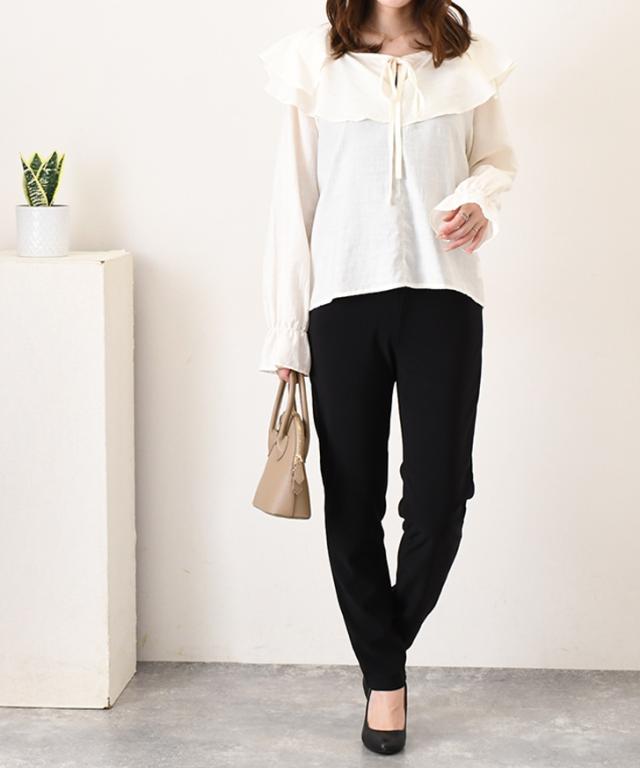コメント:ヒールのある靴と合わせるとバランス良く着用できました。伸縮性抜群の生地とややゆとりのある作りで楽に穿けました。