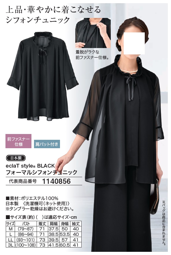 日本製 フォーマルシフォンチュニック 喪服 礼服 礼装 チュニック シースルー 五分袖 ブラックフォーマル レディース 婦人服 ミセス シニア 女性 ブラック 黒 フォーマル 上品 シンプル フェミニン フリル襟 リボン 体型カバー シニアファッション 40代 50代 60代 70代 80代 90代 母の日 お母さん おばあちゃん 喪服 礼服 礼装 葬式 通夜 式典 おしゃれ