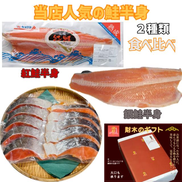 【送料無料】当店人気の鮭半身 紅鮭 銀鮭2種の食べ比べセットお試し5切れずつが登場☆(鮭 紅鮭 銀鮭 しゃけ)