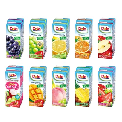 DOLE ドール 100% フルーツジュース 詰め合わせセット 200ml×10種 ×2本|オレンジ・グレープフルーツ・パイナップル 他|紙パック (生産の都合で味の変更可能性あり)自社名入りシール付