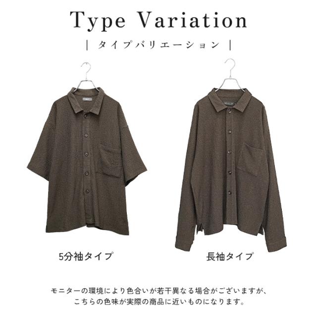 1年を通じて楽しんでいただけるよう「長袖タイプ」が新登場!表面の細かな凹凸が豊かな表情をつくり出し、洒落た雰囲気に仕上がる楊柳素材のシャツは、程よいオーバーサイズと伸縮性抜群の素材でリラックス感のある着心地に。