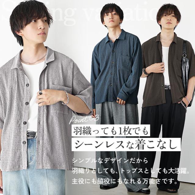 シャツ メンズ 長袖 半袖 シャツ 涼しい オーバーサイズ シャツ ゆったり ゆるい 薄手 ビッグシルエット シャツ 大きいサイズ ゆる 5分袖 五分袖 ビッグシャツ イージーケア 黒 青 ブルー 楊柳 春 夏服 秋服 メンズファッション 韓国ファッション minority マイノリティ