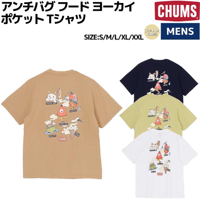 チャムス CHUMS Anti-Bug Food Yokai Pocket T-Shirt アンチバグ フード ヨーカイ ポケット Tシャツ メンズ 春 夏 カジュアル アウトドア トップス 半袖 Tシャツ クルーネック プルオーバー CH01-2508