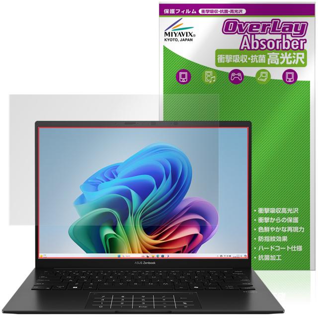 ASUS Zenbook 14 UM3406KA 保護 フィルム OverLay Absorber 高光沢 for エイスース ゼンブック 衝撃吸収 高光沢 ハードコート 抗菌