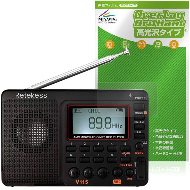 Retekess ポータブルラジオ V115 保護 フィルム OverLay Brilliant for 防災ラジオ 液晶保護 指紋がつきにくい 指紋防止 高光沢