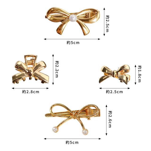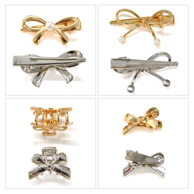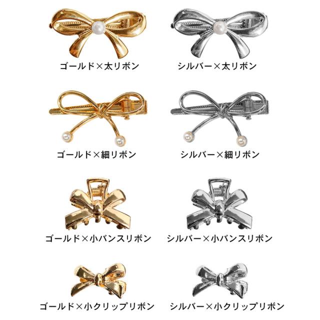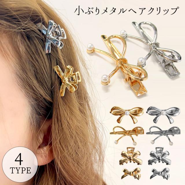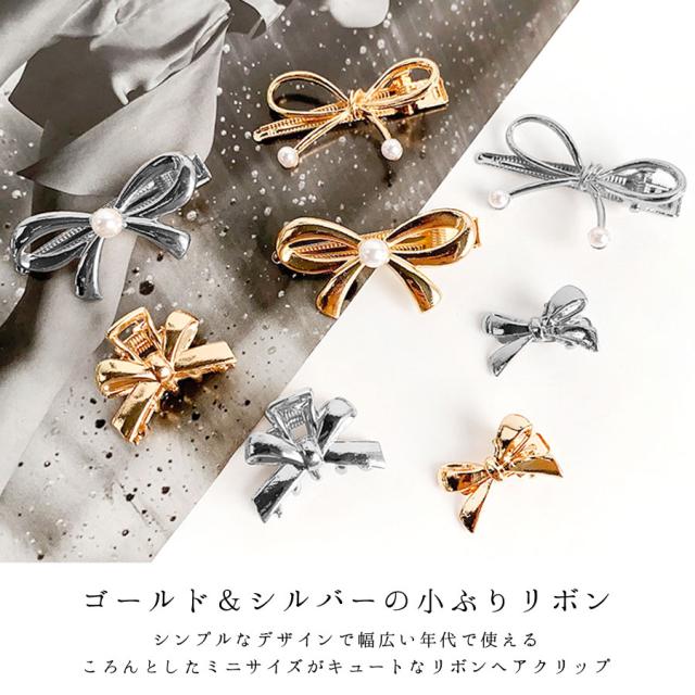 ヘアクリップ メタル リボン パール ミニ 小さめ 小ぶり バンスクリップ ミニサイズ シンプル ヘアアクセサリー レディース 前髪クリップ ミニクリップ ヘアピン くちばしピン (hac345)