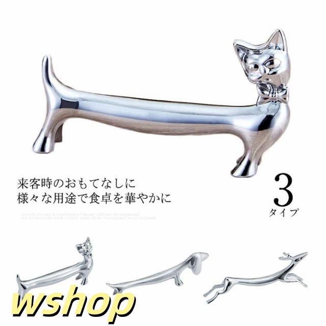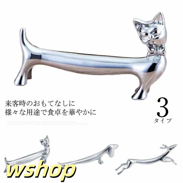 【wshop 】カトラリーレスト ダックスフント型 猫 ナイフレスト フォークレスト 鹿型 カトラリー置き スプーンレスト ダックス お箸置き 置き物 子犬 イヌ いぬ 犬型 バレンタイン クリスマス トナカイ シカ シルバー レストラン 洋食屋 喫茶店 送料無料