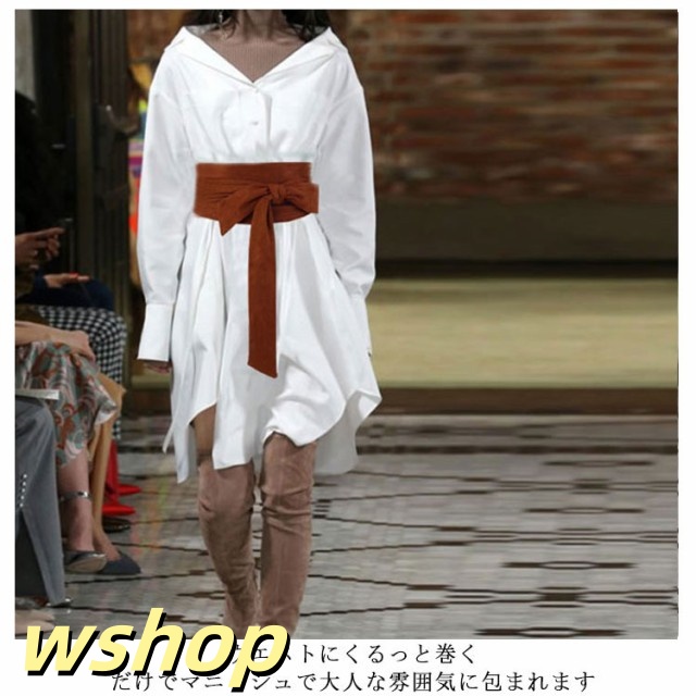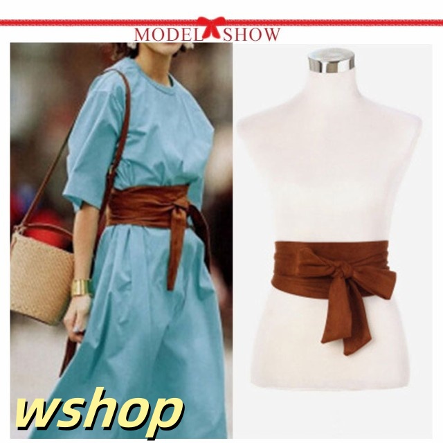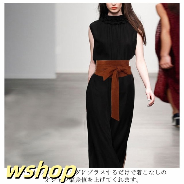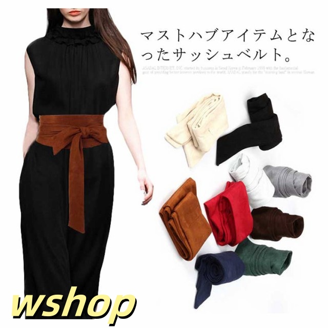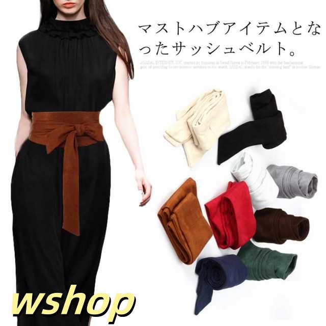 【wshop 】【送料無料】サッシュベルト レディース リボン サッシュ スエード調 ワンピース ドレス 太ベルト ウエストマーク ハイウエスト ワイド 穴なし 太め カジュアル おしゃれ 緑 黒 紺 ダークグリーン ブラウン ボルドー ブラック ネイビー ベージュ 夏