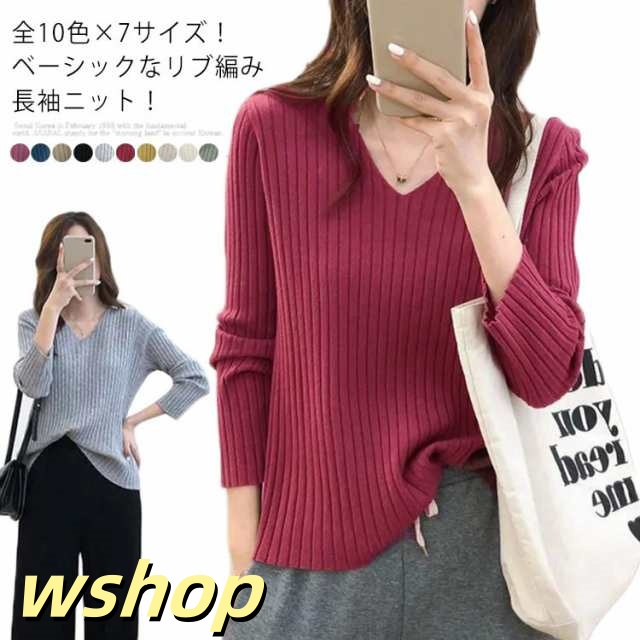 レビュー高評価商品 毎日使える便利品 ニットトップス 】全10色7サイズ!大きサイズ ニット 送料無料 今だけ 売上急増中 Vネック 【wshop 無地 冬 リブ 春 リブニット お洒落 ゆるニット 秋 シンプル ゆったり 軽量仕様 セーター プルオーバー お買い得プライス