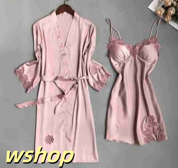 ルームウェア ネグリジェ ナイトガウン パジャマ 寝間着 セット 可愛い オシャレ 楽 リラックス シルク 黒 白 ピンク グリーン グレー イ