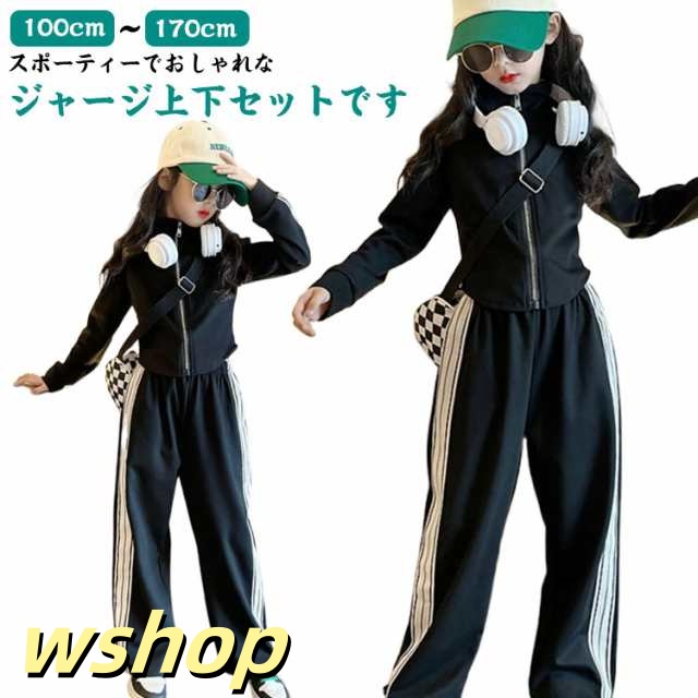 【wshop 】お洒落 長袖 ロングパンツ 上下 2点セット キッズ ファスナー 前開き 子供ジャージ ジャージ 女の子 子供 ジップアップ 長ズボン 韓国 ジュニア パーカー トレーニングウェア ウエストゴム カジュアル 運動着 セットアップ スポーツ ガールズ 子供服