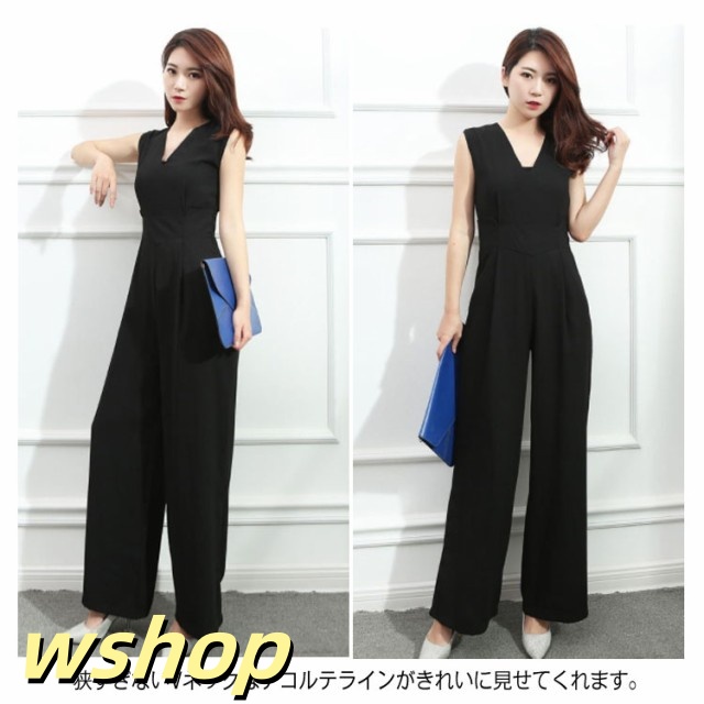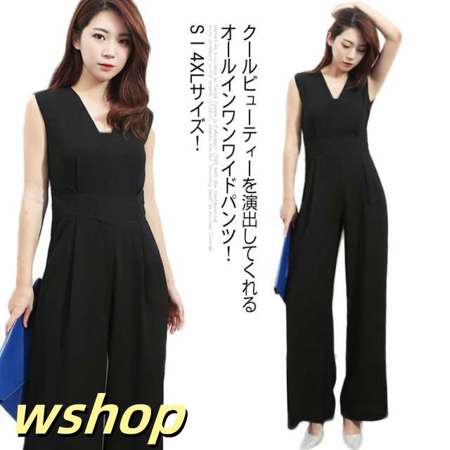 新登場 ランキング常連 Vネック パンツドレス 夏 】S-4XLサイズ!オールインワンパンツドレス 春 ワイドパンツ ノースリーブ 【wshop ロング丈 ドレス お呼ばれ送料無料 サロペット オールインワン 秋 無地 オーバーオール コンビネゾン 今だけ限定