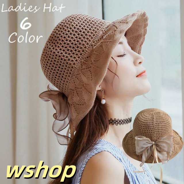 売れ筋アイテム ギフトにも最適 】帽子 レディース 紫外線対策 熱中症対策 今だけ 【wshop ファッション小物 メッシュ 外出 売上急増中 大きめリボン付き サンハット ハット 夏 新登場 UV対策 日除け 麦わら帽子風 即納対応中