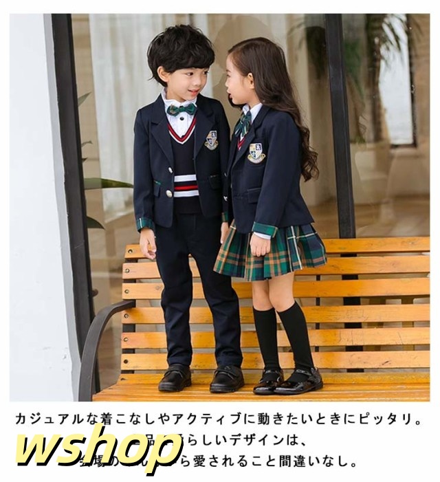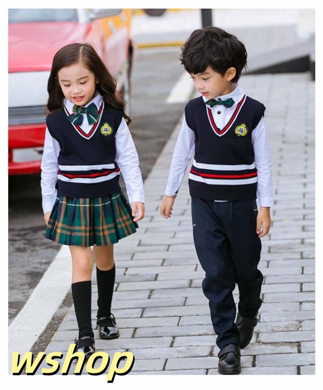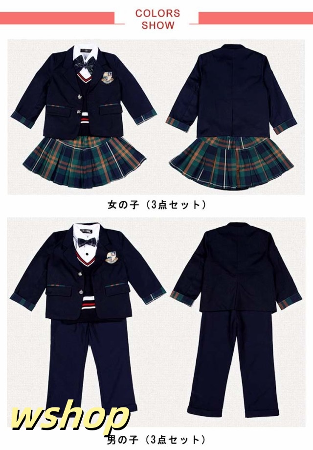 【wshop 】送料無料 入学式 スーツ 女の子 3点セット ニットベスト 子供 キッズ 卒業式 男の子 制服 上下セット フォーマル 学生服 セーラー ミニスカート ニット ベスト シャツ ブラウス 児童 幼稚園・発表会・生日会・演出服 子供 セット タキシード こども