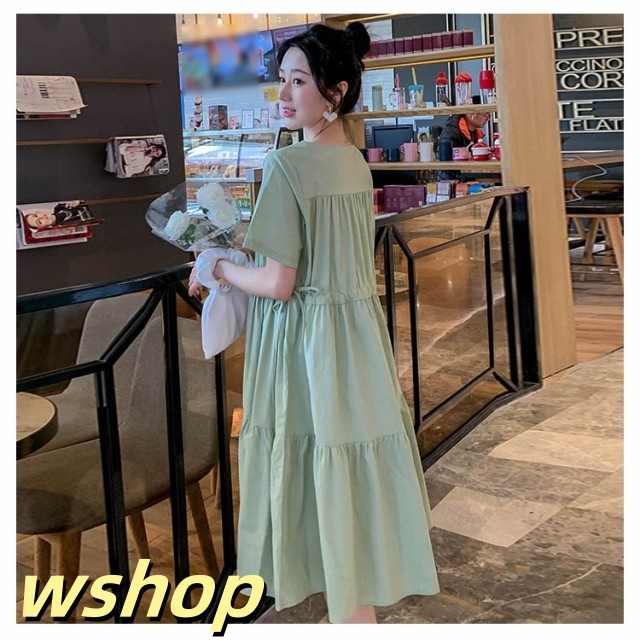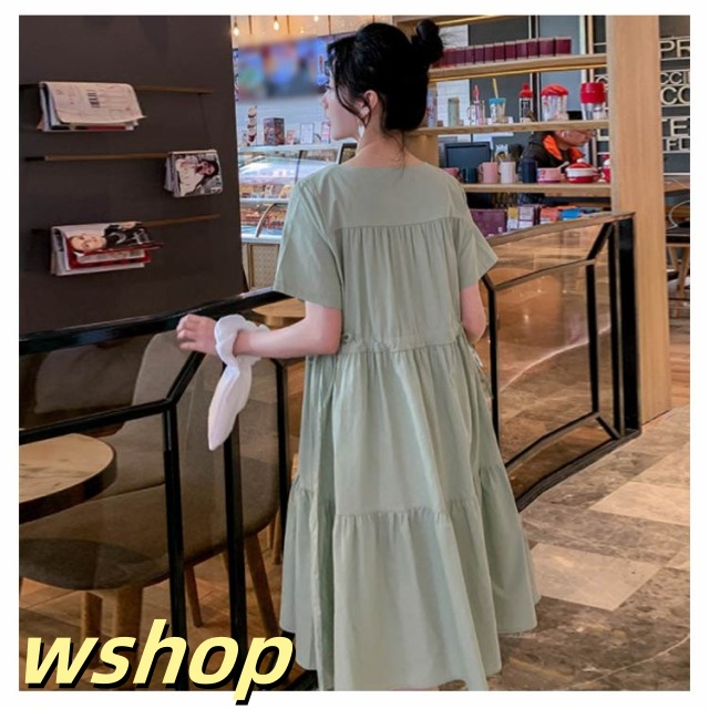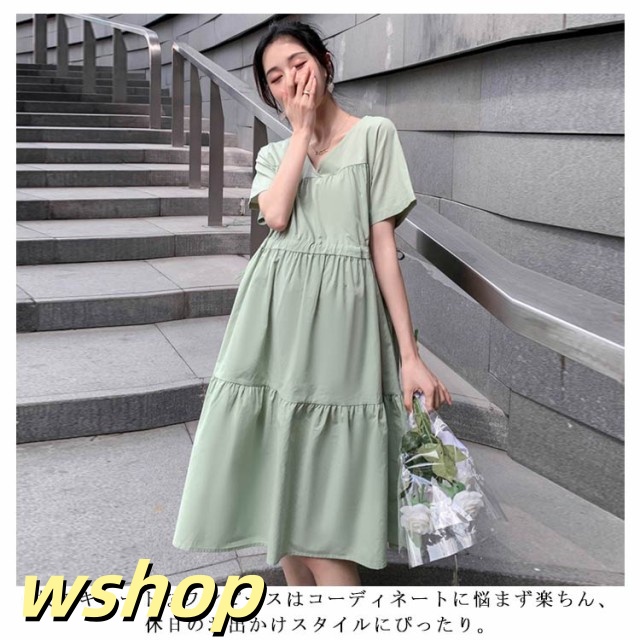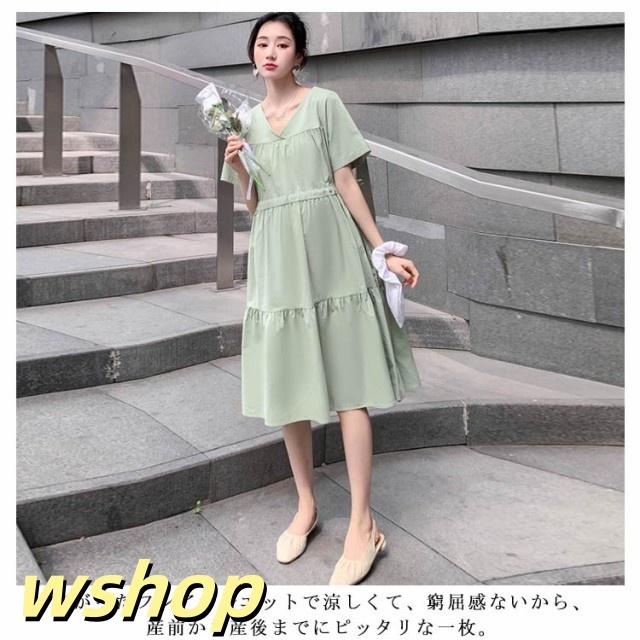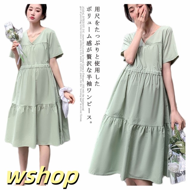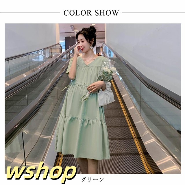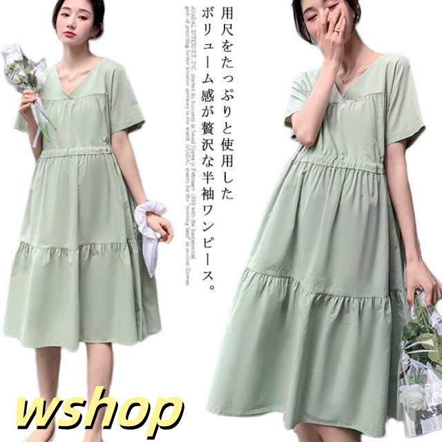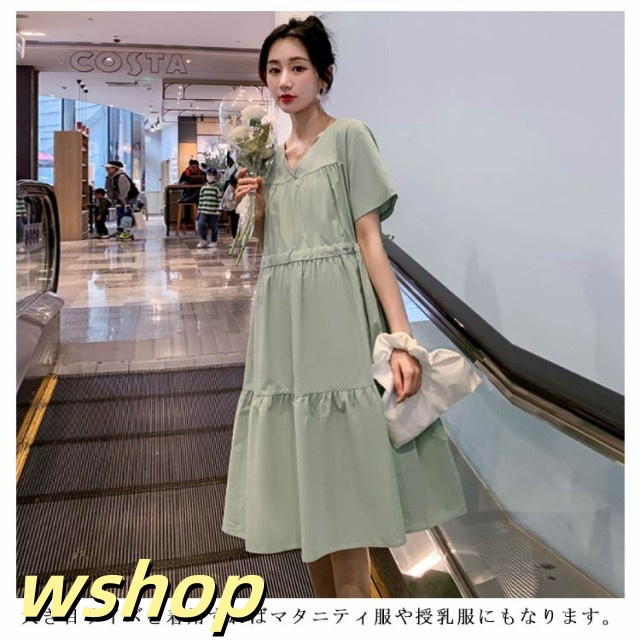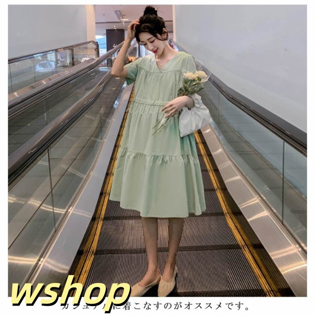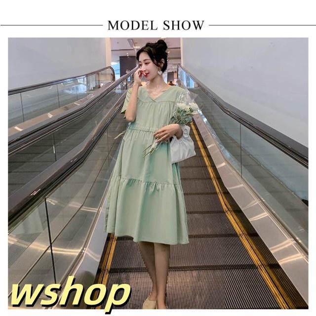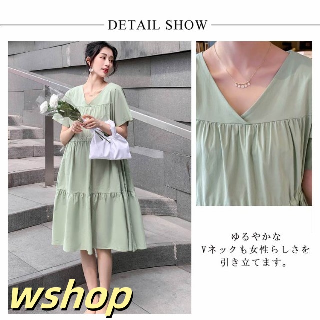 即納OK SNS話題 産前産後 レディース Vネック 大きいサイズ 】送料無料マタニティワンピース シンプル ゆったり 半袖 【wshop 妊婦服 かわいい おしゃれ ワンピース フレア 春夏 カジュアル マタニティ お出掛け ミモレ丈ワンピース 在庫わずか