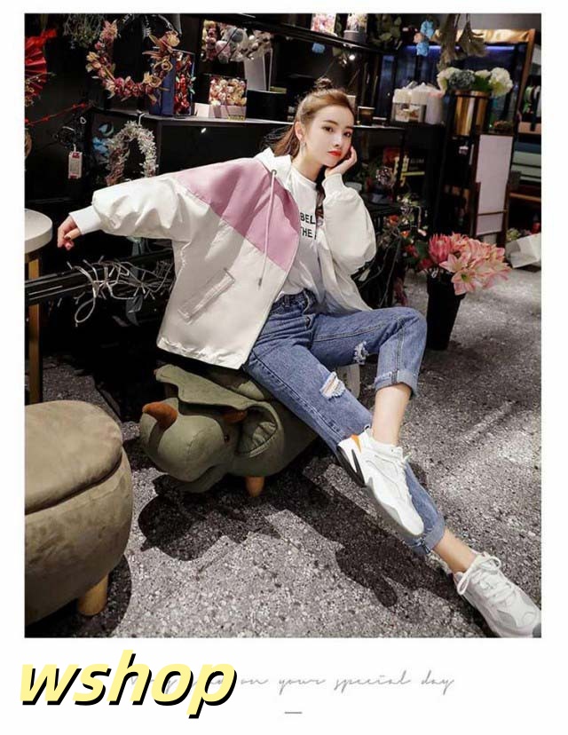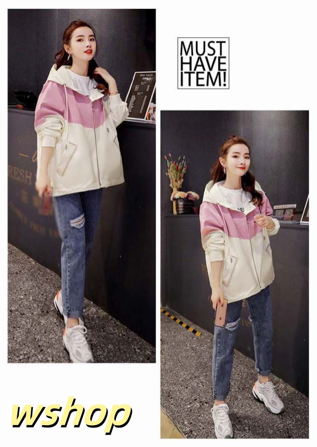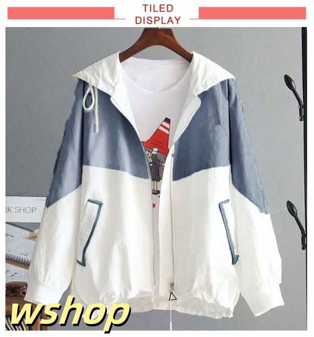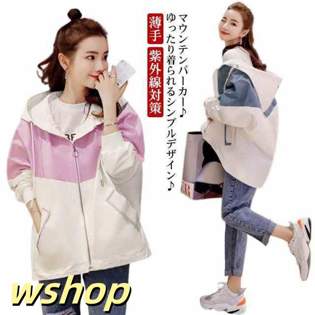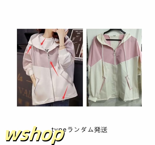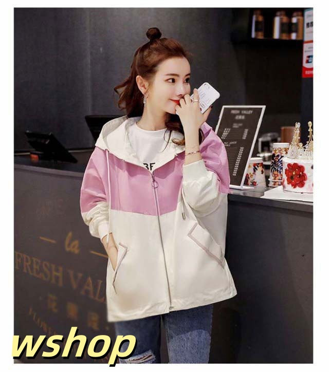 【wshop 】アウター レディース ウインドブレーカー ウインドブレーカー ジャケット 春 ジャンバー 薄手 ブルゾン 切り替え 無地 フード付き パーカー UVカット 紫外線対策 ショート丈 ライトアウター ルーズ 防風 おしゃれ 春 夏 秋 学生 10代 20代 30代 40代 送料無料