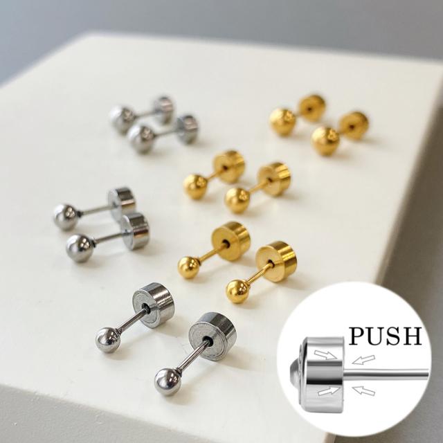 差し込むだけで簡単装着が可能な、プッシュピンタイプのステンレス製ボールスタッドピアス。