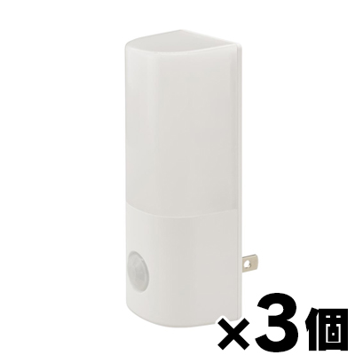 オーム電機 LEDナイトライト(人感・明暗センサー/昼白色/65 lm/点灯保持10秒/コンセント差込式/ホワイト)×3個 ※お取り寄せ品 4971275651562