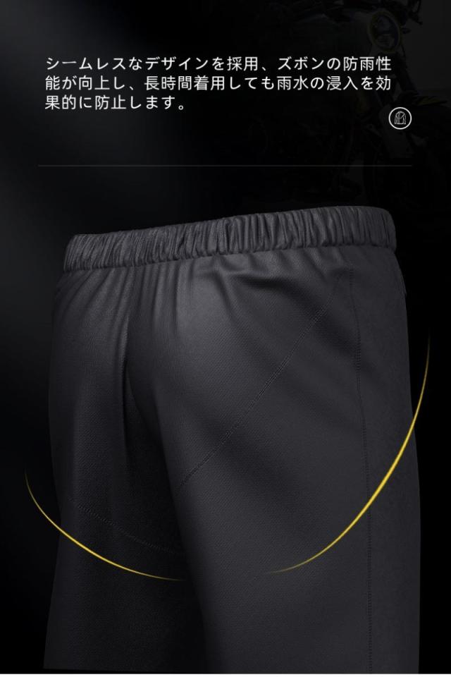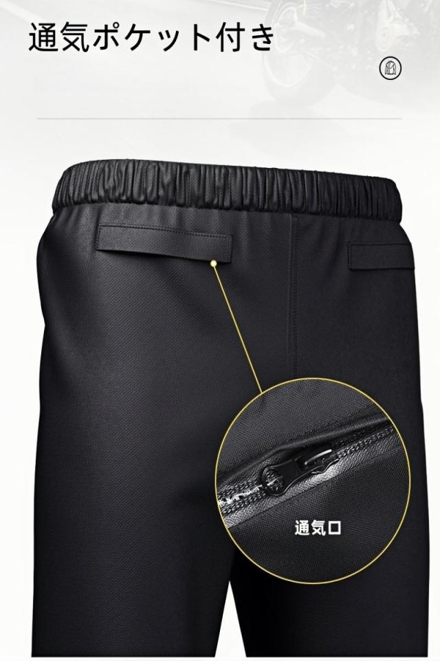【透湿性能】表面生地(PVC素材)は、水滴よりも小さいな穴が無数に空いており、外からの雨は弾き、ウエア内の蒸れはその穴から逃します。また、裏地全体にメッシュ素材を使用しているため、コーティングされたウェアの生地が、肌に直接触れるのを防いでくれるので、快適なさらっとした着心地を保てます。また、ズボンの前部分2箇所に通気口があり、ウェア内の蒸れや熱気を外に放出します。