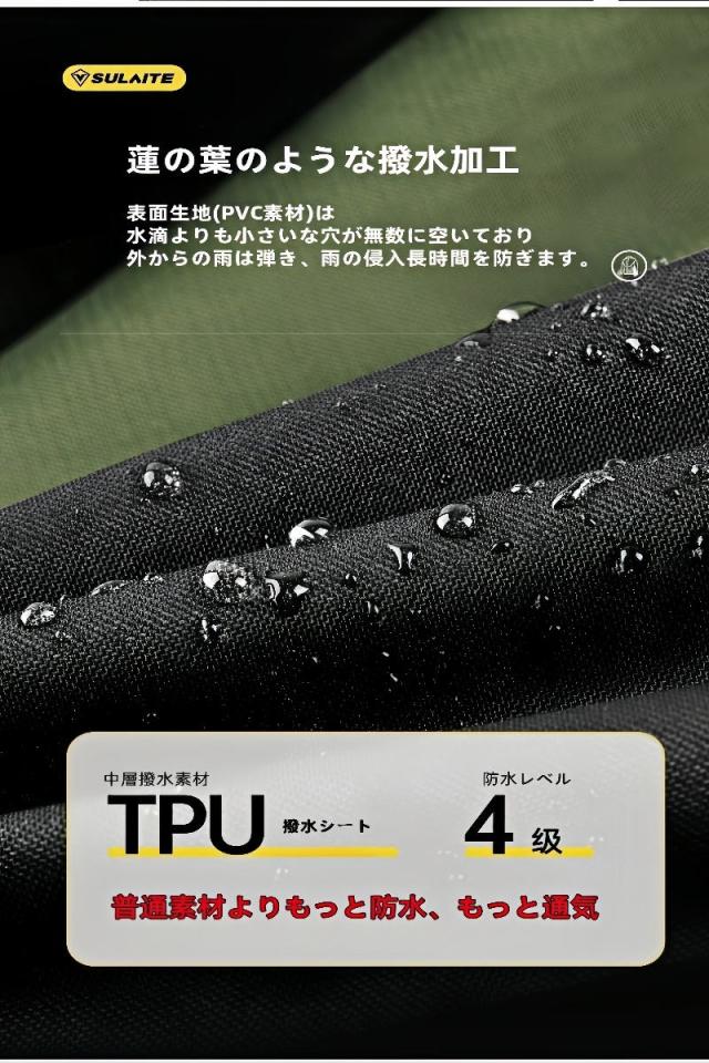 【用途】様々なレインシーンに対応!汚れの付きにくい撥水加工が施されているため、通勤/通学/自転車/バイクなどの日常使いはもちろん、キャンプや釣り、ハイキングなどのアウトドアまで幅広くご使用いただけます。梅雨シーズンの豪雨/台風対策などでも活躍間違いなしです!