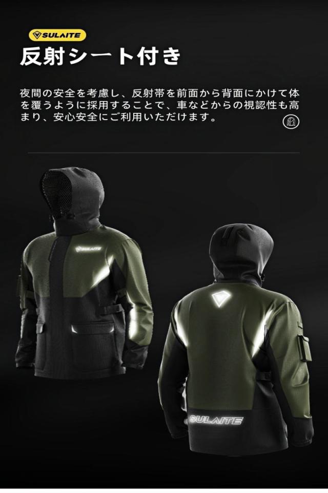 【反射シート付き】夜間の安全を考慮し、反射帯を前面から背面にかけて体を覆うように採用することで、車などからの視認性も高まり、安心安全にご利用いただけます。