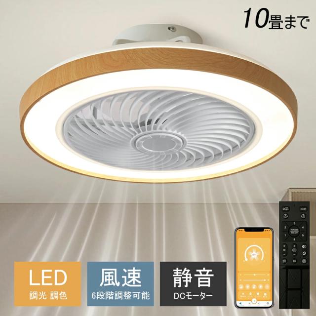 シーリングファン シーリングファンライト led 10畳 12畳 50cm 扇風機 ファン付き照明 調光調色 照明器具 おしゃれ 木目調 DCモーター 風量調節 天井照明 ビング 寝室 和室 軽量 間接照明 子供部屋 軽量 静音 空気循環