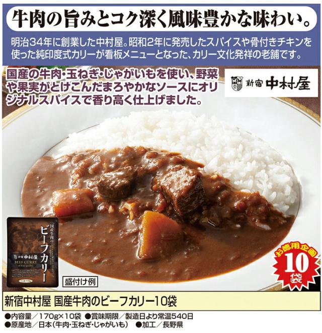 国産牛肉のビーフカリー 170g×10袋 新宿中村屋 新宿中村屋カレー 中村屋レトルトカレー レトルトカレー 送料無料 中村屋 中村屋カレー