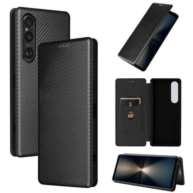 【送料無料】Xperia 1 VII マーク7 ケース カバー 手帳型 スマホケース 薄型 カーボンデザイン 炭素繊維カバー TPU 保護バンパー 財布型 マグネット式 カード収納 落下防止 ホルダ 横開き エクスペリア ワン マークセブン