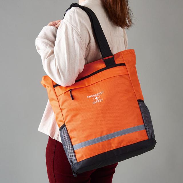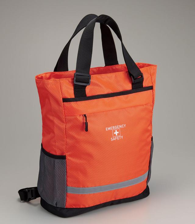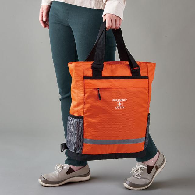肩掛けトートも出来る2WAY仕様の避難用リュックに、各種防災グッズをセット。軽量・口広ファスナーで中に入っている物の取り出しもスムーズ。撥水素材で雨の日の避難も安心。保存食もセットされた一人用防災セット。