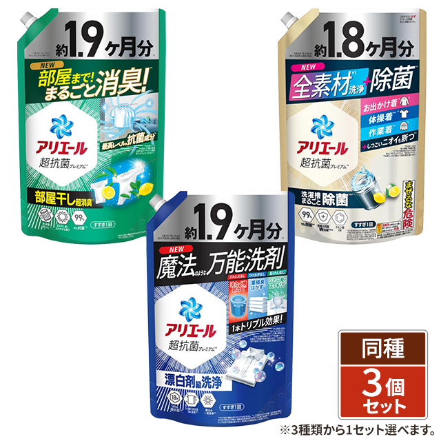 [3種類から1セット選択] アリエール ジェル 洗濯洗剤 つめかえ ウルトラジャンボ 1,400g×3個セット 詰め替え