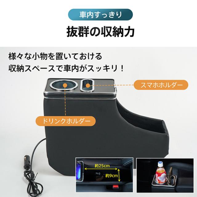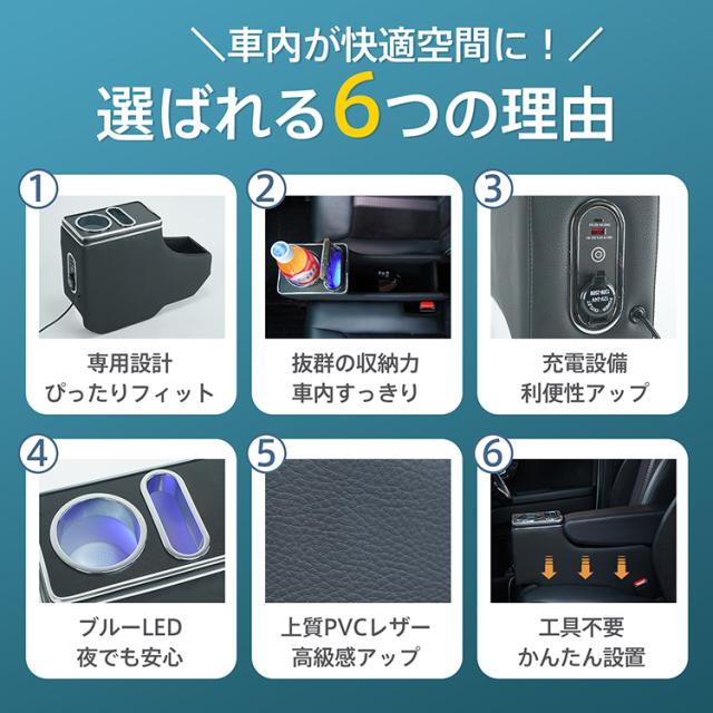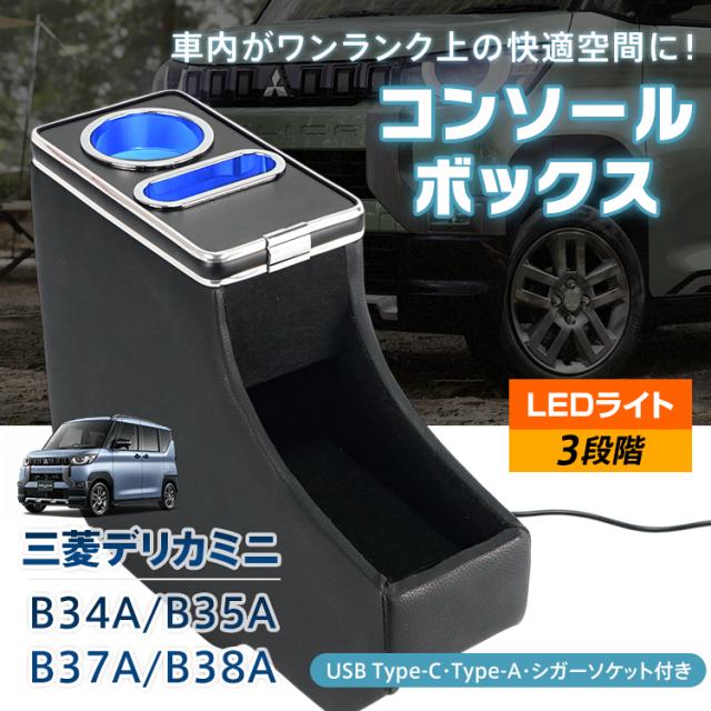 コンソールボックス 三菱 デリカミニ B3系 B34A B35A B37A B38A 専用設計 LED ライト センターコンソール カー用品 車 パーツ 内装 収納ボックス ドリンクホルダー スマホホルダー PVCレザー シガーソケット 小物入れ ee414