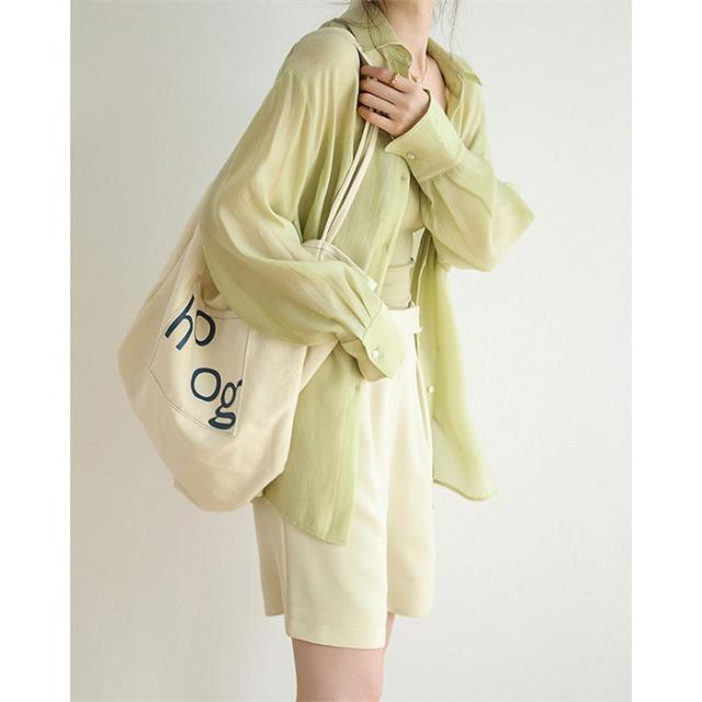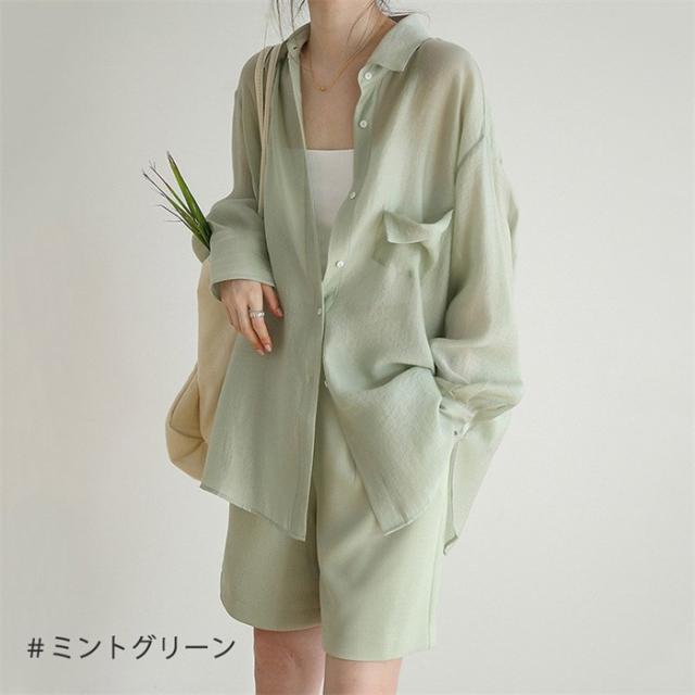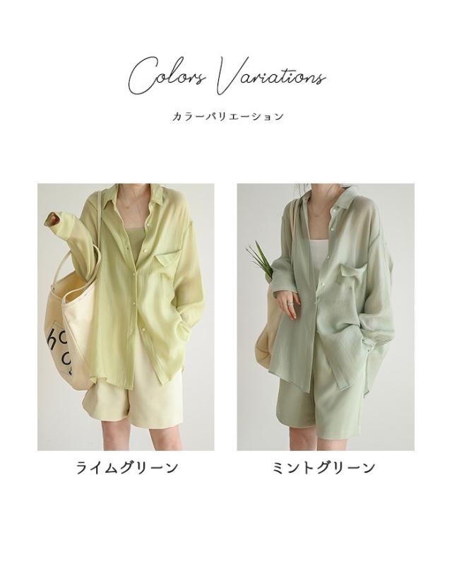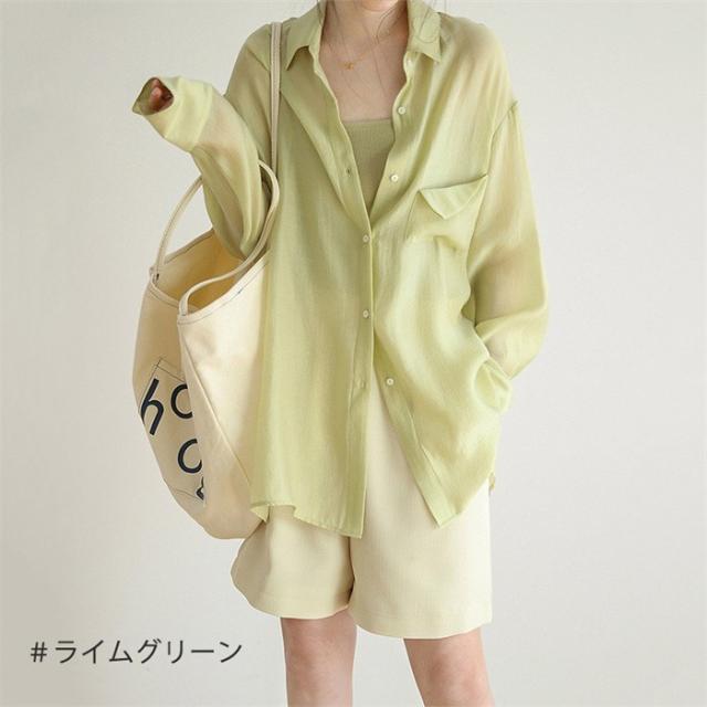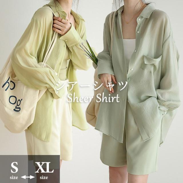 シアーシャツ レディース 夏 長袖 シースルー 大人 日焼け対策 uv対策 体型カバー 薄手 シアー トップス ボタン タレ感 前開き 微透け 透け感 ゆったり カジュアル シャツ ブラウス グリーン 緑 dh069x1x1z7