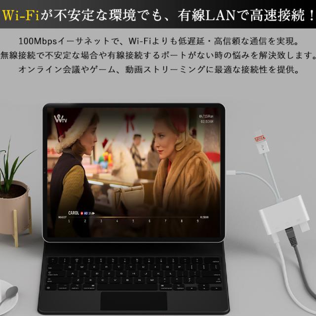 ・安定充電、有線LANに接続、USBポートの3in1デザインの多機能変換アダプタです。