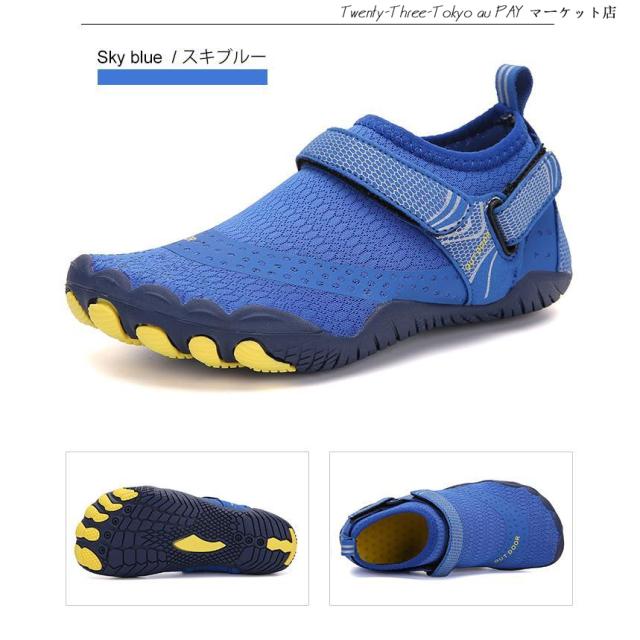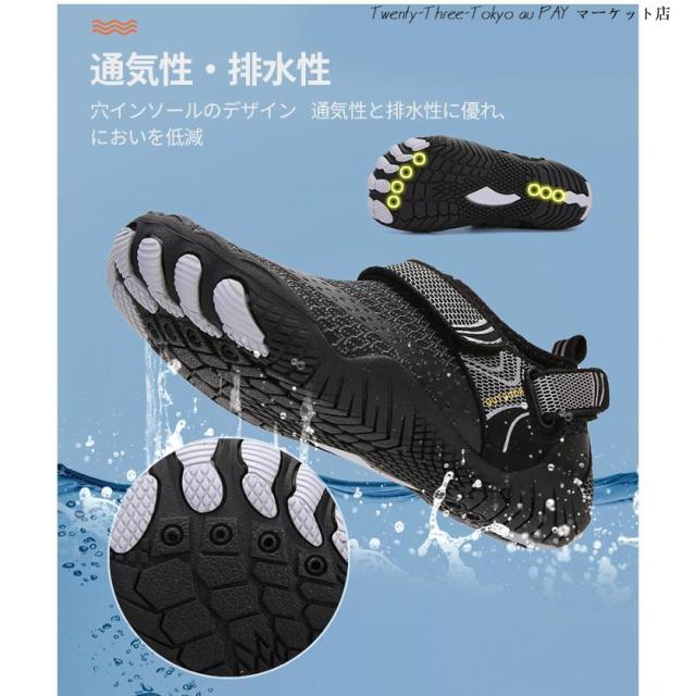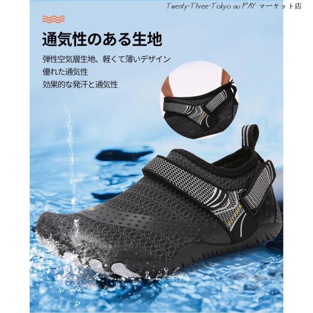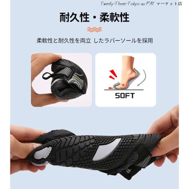 【安全性と滑り止め】ソールは滑り止めゴム製で、耐摩耗性、滑り止めに優れています。滑りを防ぐだけでなく、岩の破片や貝殻から足を保護します。